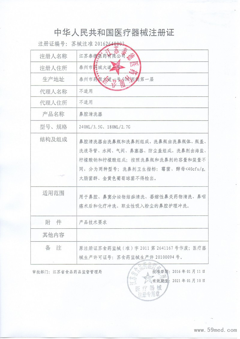 | 發(fā)證機(jī)構(gòu): | ??江蘇省食品藥品監(jiān)督管理局 | 發(fā)證時(shí)間 : | ??2016-01-11 |