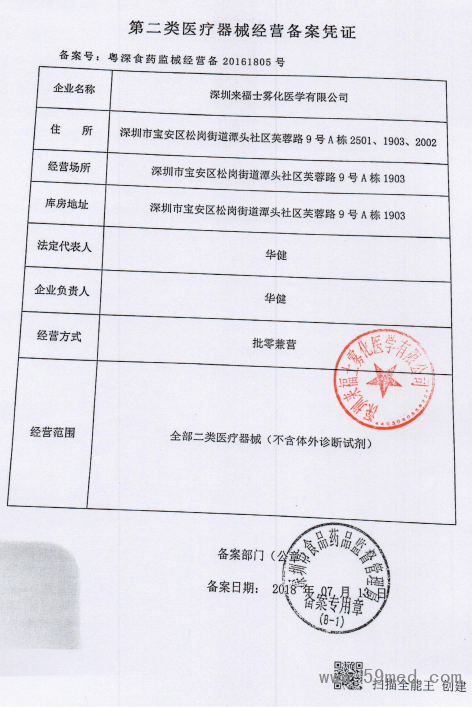 | 發(fā)證機(jī)構(gòu): | ??深圳市食品藥品監(jiān)督管理局 | 發(fā)證時(shí)間 : | ??2018-07-13 |