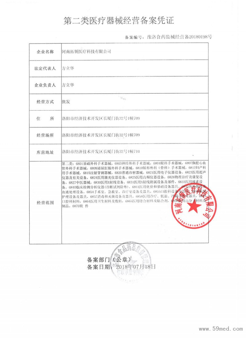 | 發(fā)證機(jī)構(gòu): | ??洛陽(yáng)市食品藥品監(jiān)督管理局 | 發(fā)證時(shí)間 : | ??2018-07-18 |