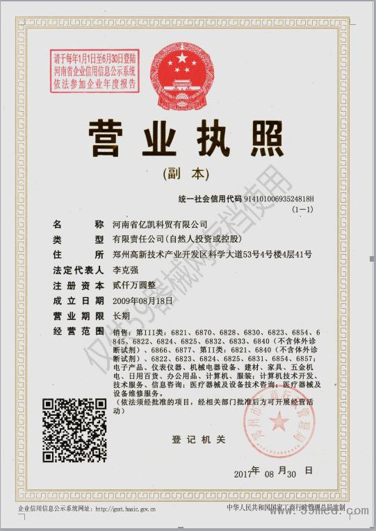 | 發(fā)證機(jī)構(gòu): | ??鄭州市工商行政管理局 | 發(fā)證時(shí)間 : | ??2017-08-30 |