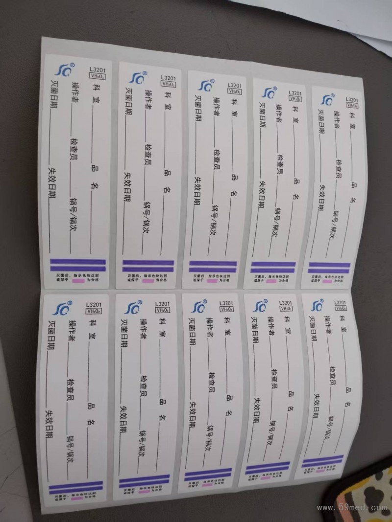 使用方法:將化學(xué)標(biāo)簽粘貼在待滅菌包裹表面。滅菌完成后,取出包裹并觀察指示標(biāo)簽:如果指示標(biāo)簽的化學(xué)指示劑顏色由藍(lán)色變?yōu)榧t色,說(shuō)明滅菌包裹已經(jīng)過(guò)滅菌處理;如果指示劑顏色無(wú)變化或變化不明顯,則說(shuō)明包裹未經(jīng)過(guò)滅菌處理或未達(dá)到規(guī)定的滅菌條件。指示劑的變色反應(yīng)為不可逆反應(yīng),反應(yīng)后的指示標(biāo)簽可在常溫下作為記錄進(jìn)行保存。
